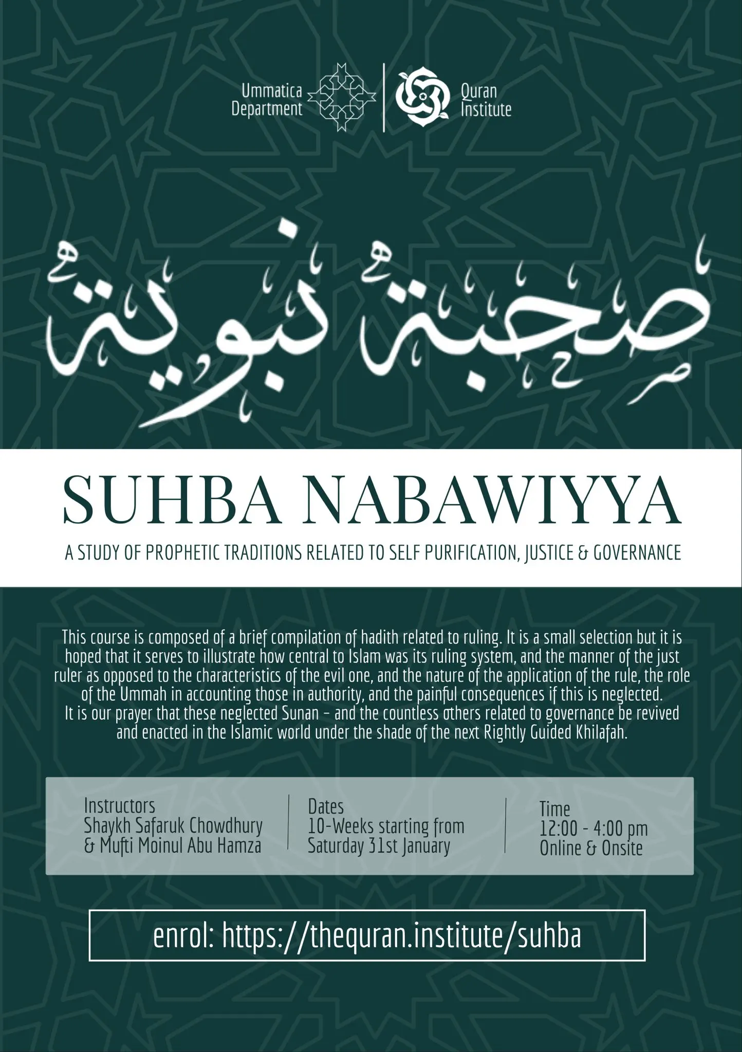 Instructor: S. Z. Chowdhury BA, AKC in Philosophy, MA, MPhil PHD. Currently doing a PHD specialising in Khurasänian Sufism. This course is suitable for foundation and intermediate level students in Islamic studies.